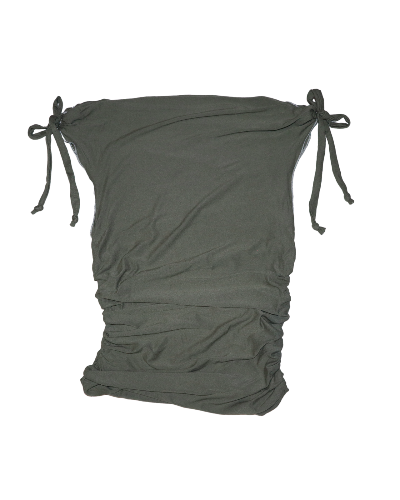 The Evie Top is a soft, sculptural tube silhouette featuring adjustable shoulder ties. Its clean neckline contrasts with the textural ruching created along the body, giving it a fluid, dimensional shape that adapts naturally to different fits and proportions.